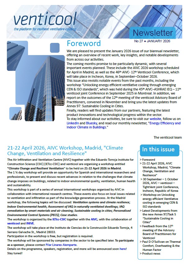 - 21‐22 April 2026, AIVC Workshop, Madrid, “Climate Change, Ventilation and Resilience”